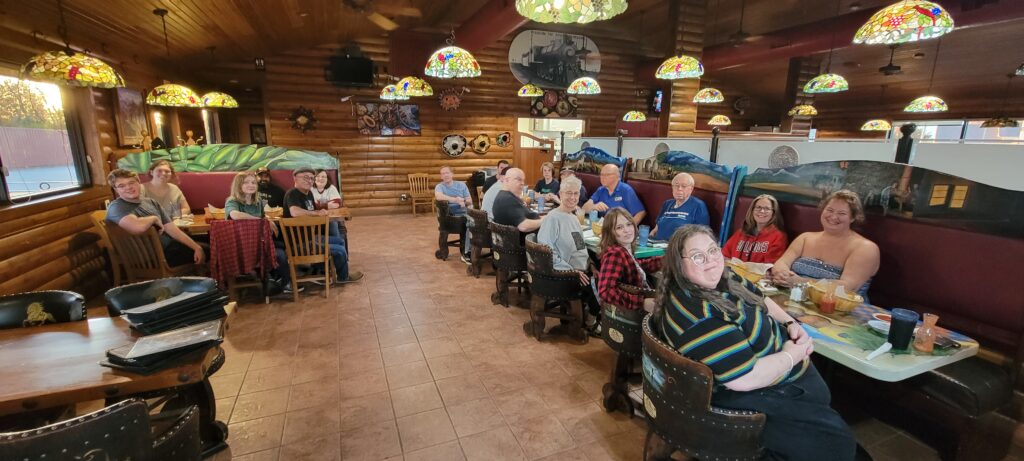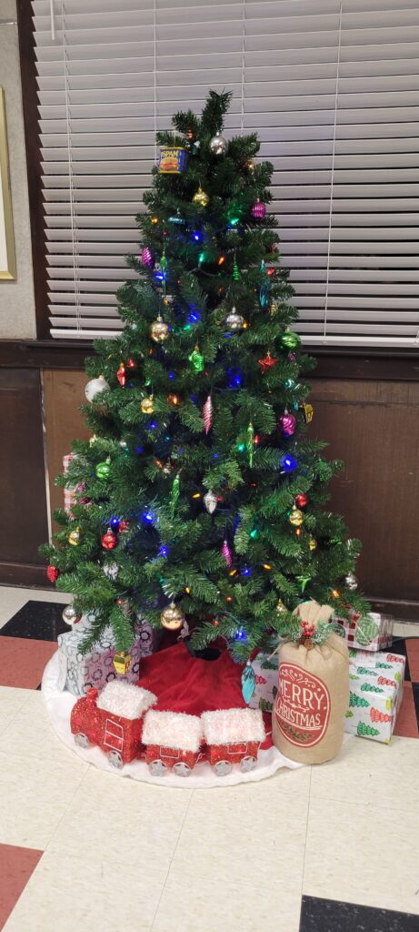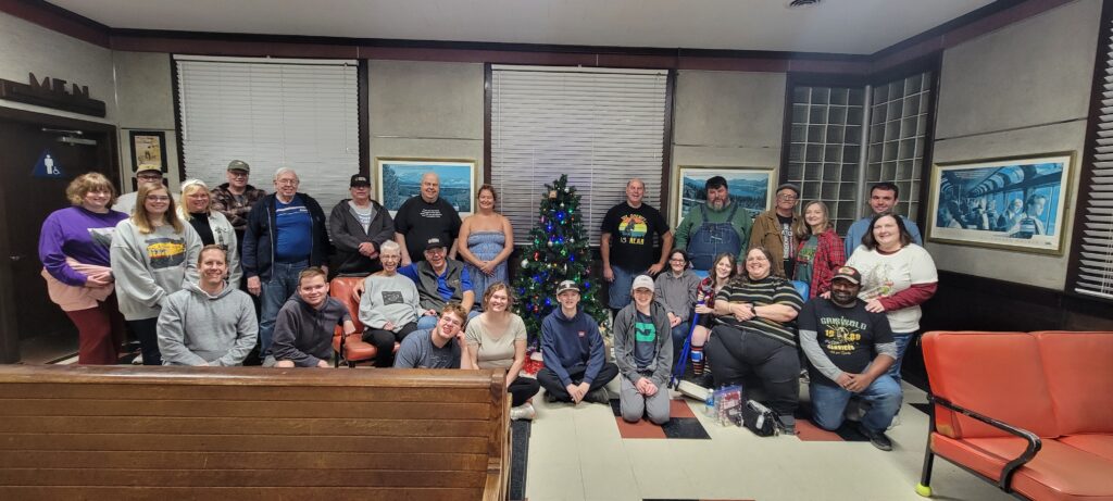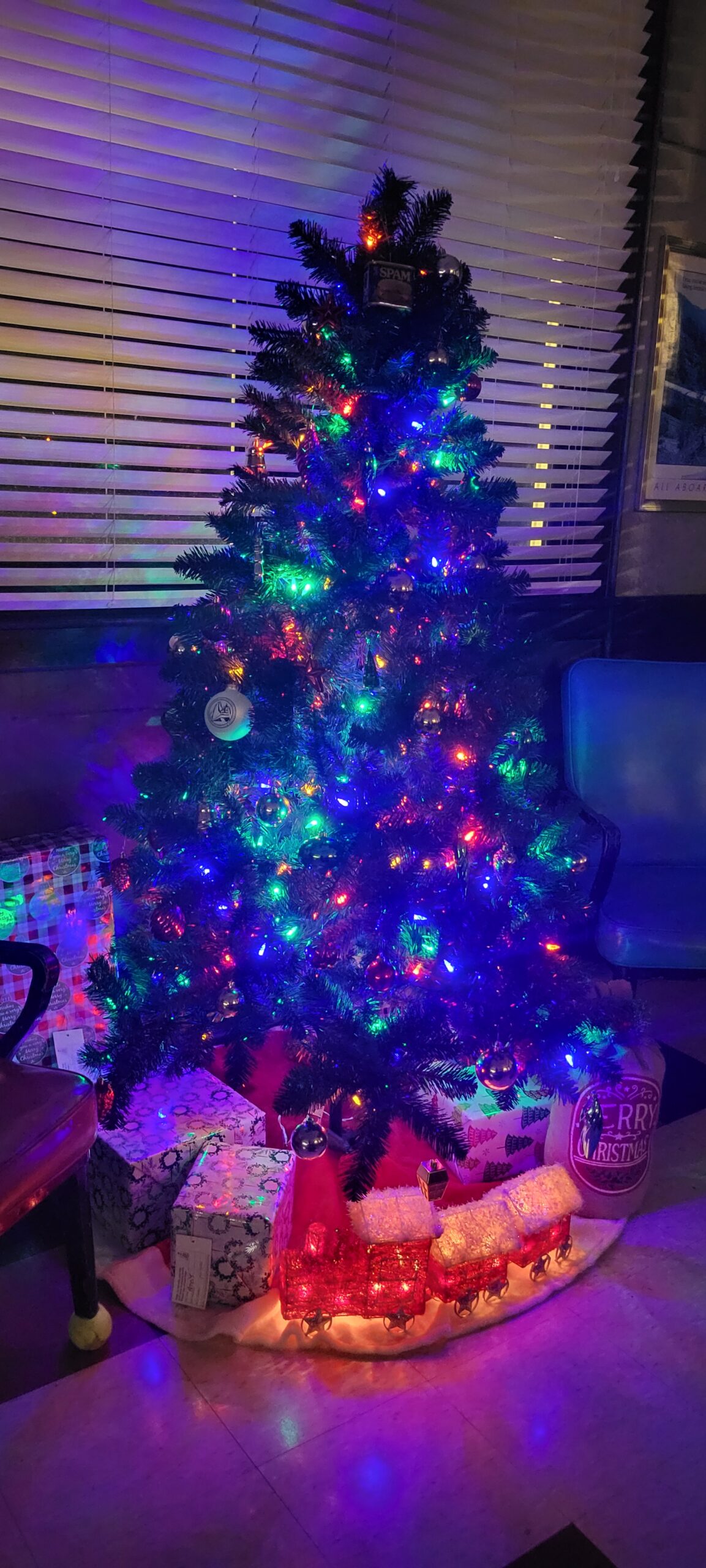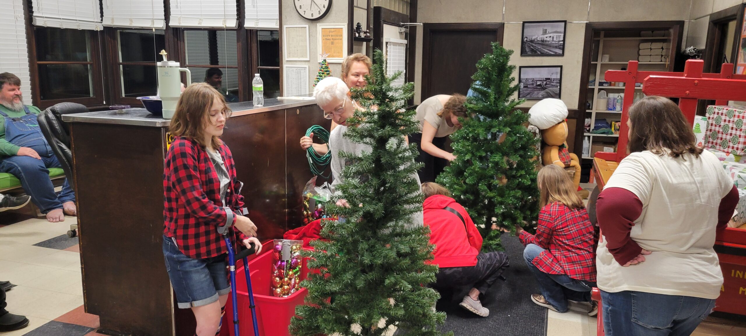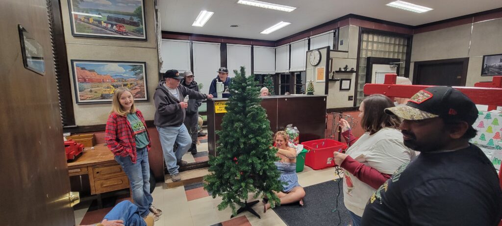 Florissant Hello and Merry Christmas from the APRHF!! What started out as a few folks having fun putting the Christmas decor up at the station has turned into a day full of fun and fellowship. This year we started with a wonderful meal at El Cantarito Mexican Restaurant here in La Plata. After that is was time to enjoy some wonderful weather and bring Christmas alive at the station. Overall there was 27 of us on hand to get this job done. Snacks were also on hand just in case. 🙂