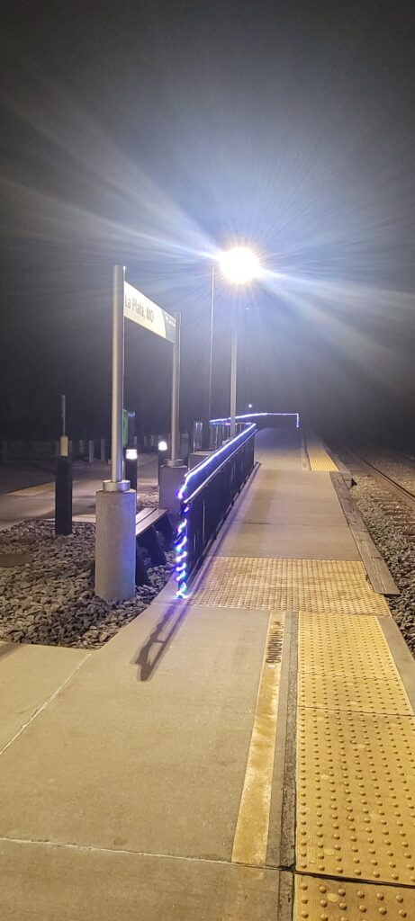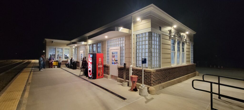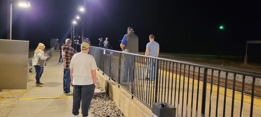 Conversation and laughter filled the air as the night went on. We of course paused for when Amtrak arrived. The conductor did his best Santa as they highballed. We then went back inside for some more snacks and cleanup of the mess that was created.