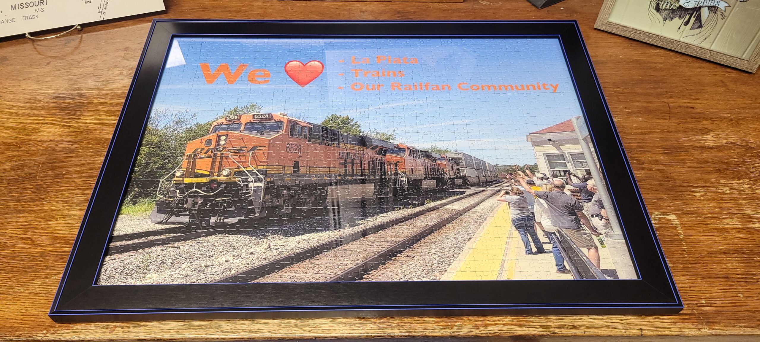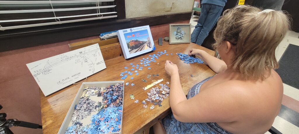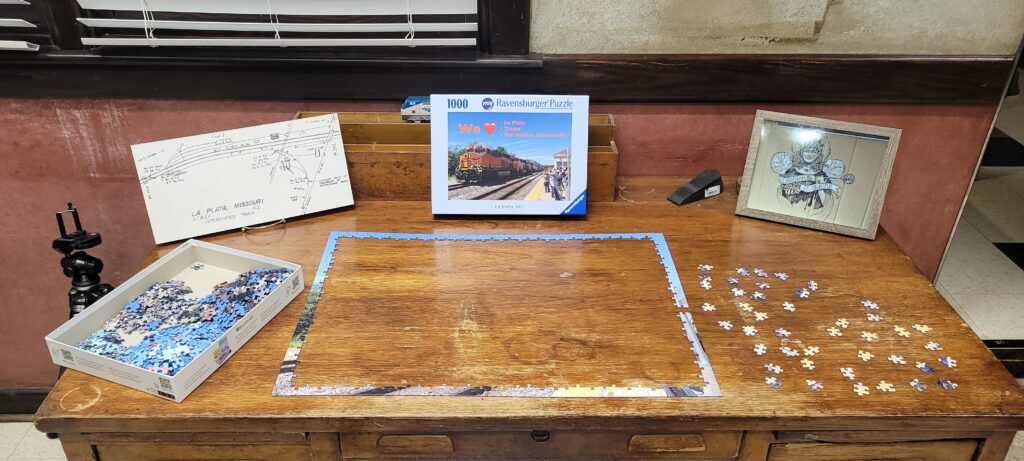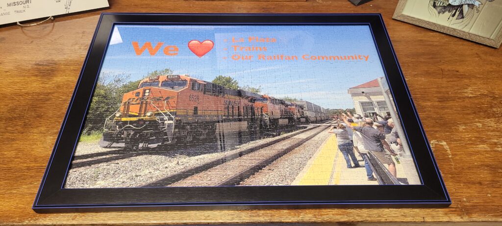 Marseille 01 One of the evenings I went to work at the LaPlata train station I saw a box by the back door. The box was from the UK. That got my interest up. I of course ran into the station and opened it up. Inside was a custom made puzzle from a photo from one of our Rail Road Days events here in LaPlata. Matt Walker had this done and I wanted everyone to enjoy it. Amy got it all setup on the desk inside the station office and we let the passengers that wanted to work on it while they were waiting on the train. We had quite a few enjoy that opportunity. We did not photograph them as most were Amish.
